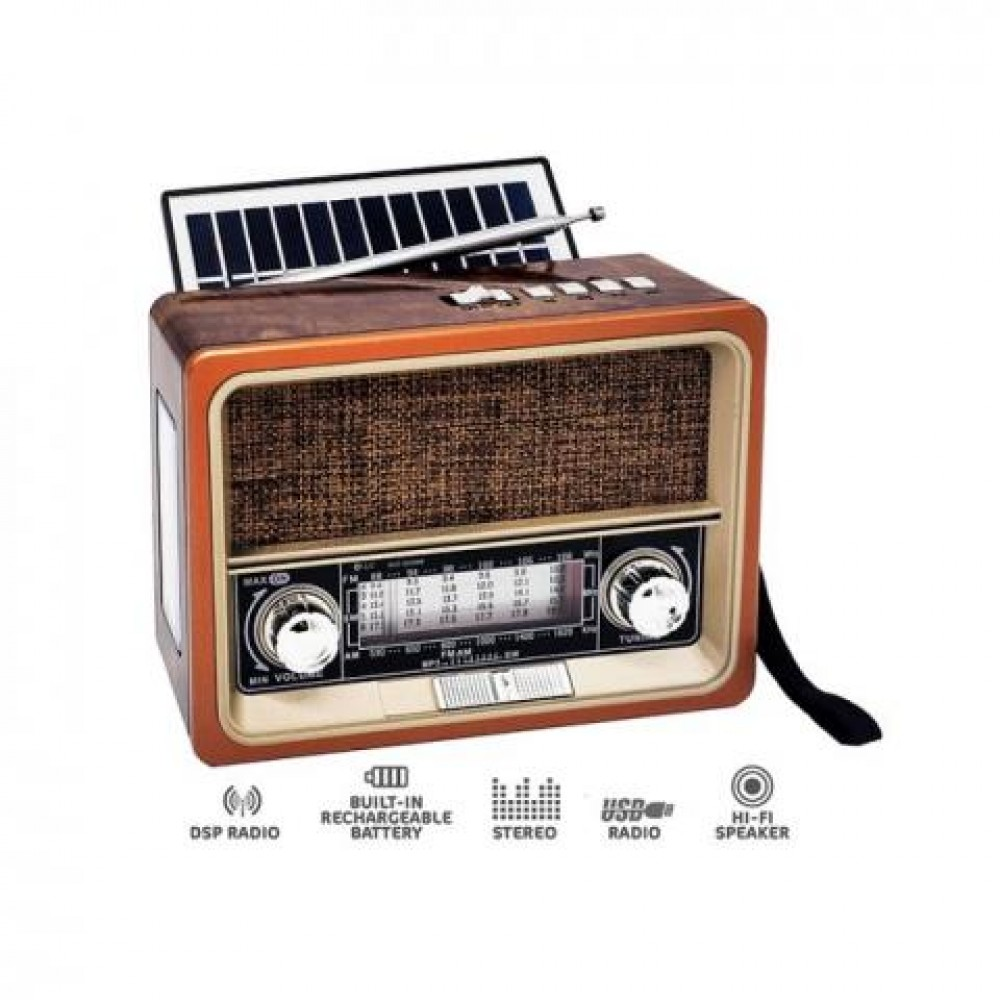 سماعة تذكرك ب أيام زمان بمواصفات حديثة راديو البر والرحلات من DLC بخاصية الشحن عن طريق الطاقه الشمسية أو الكهرباء واستمتع بقنوات متعددة وترددات مختلفة يتميز بقوة الاداء والصوت الواضح مع دعم البلوتوث وال USB لسهولة تشغيل الصوتيات المختلفة التي تناسبك.